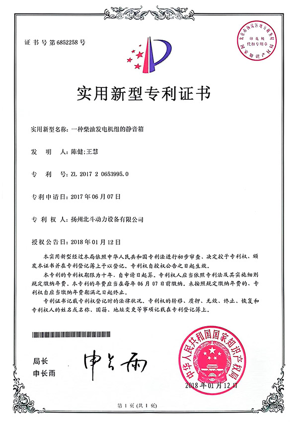 静音箱专利证书